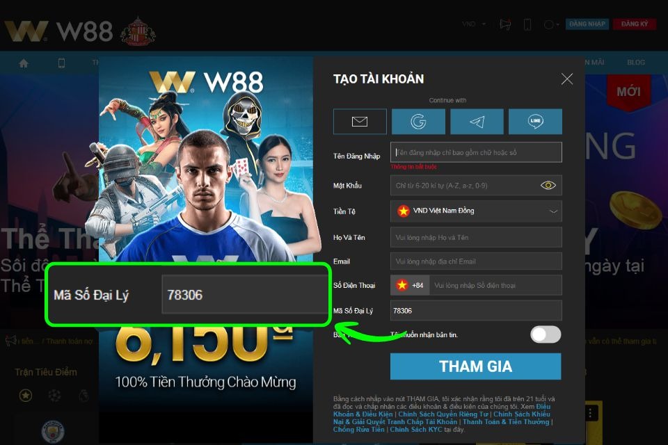 Sau khi ấn nút “Tham gia” là bạn đã đăng ký thành công tài khoản tại W88 chính thức.